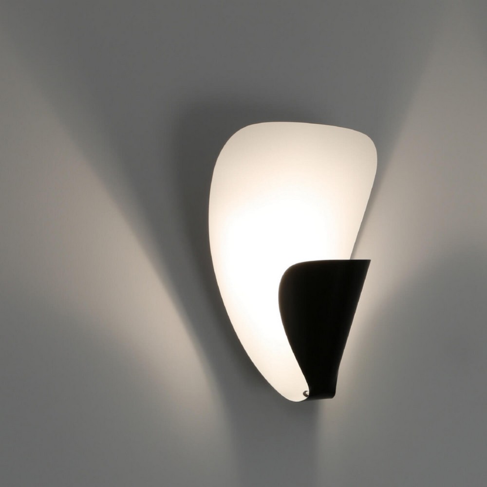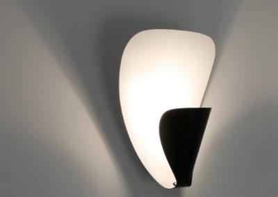 A simple design, elegantly executed with subtle curves. The bulb is wrapped and hidden from view while the light is projected out.