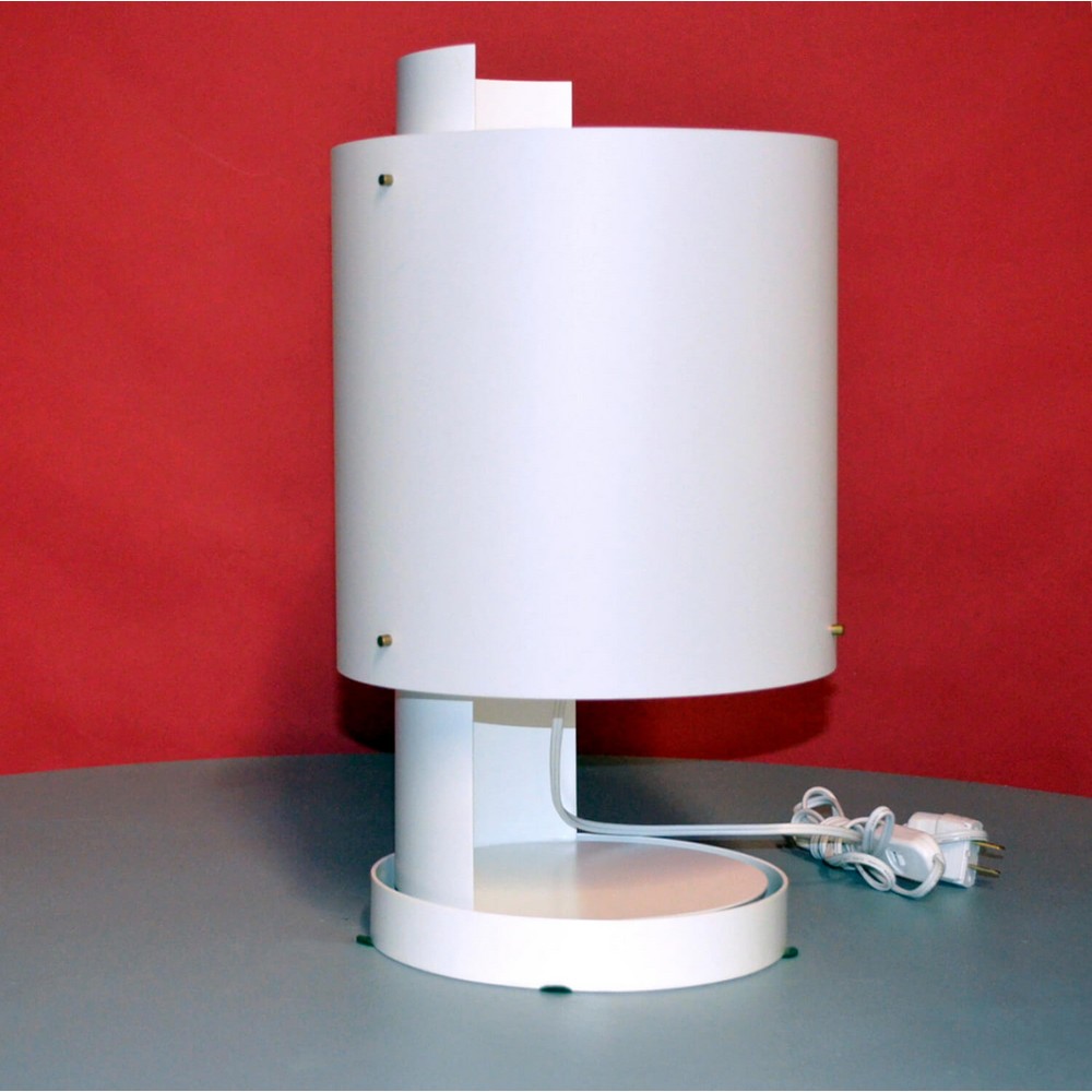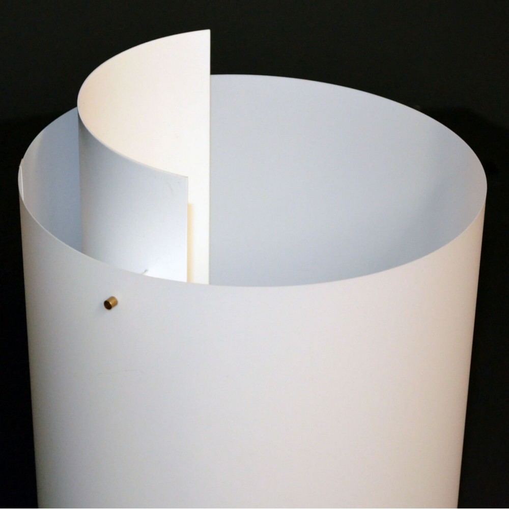 Painted Aluminum with Plastic Shade and Brass Accents.