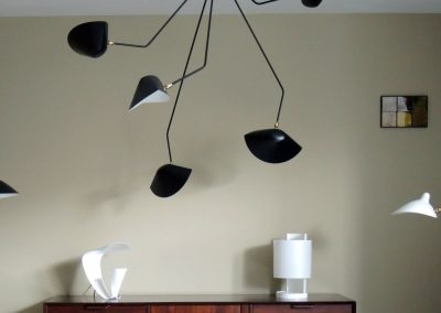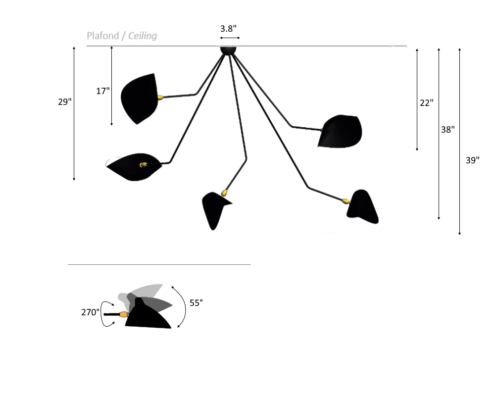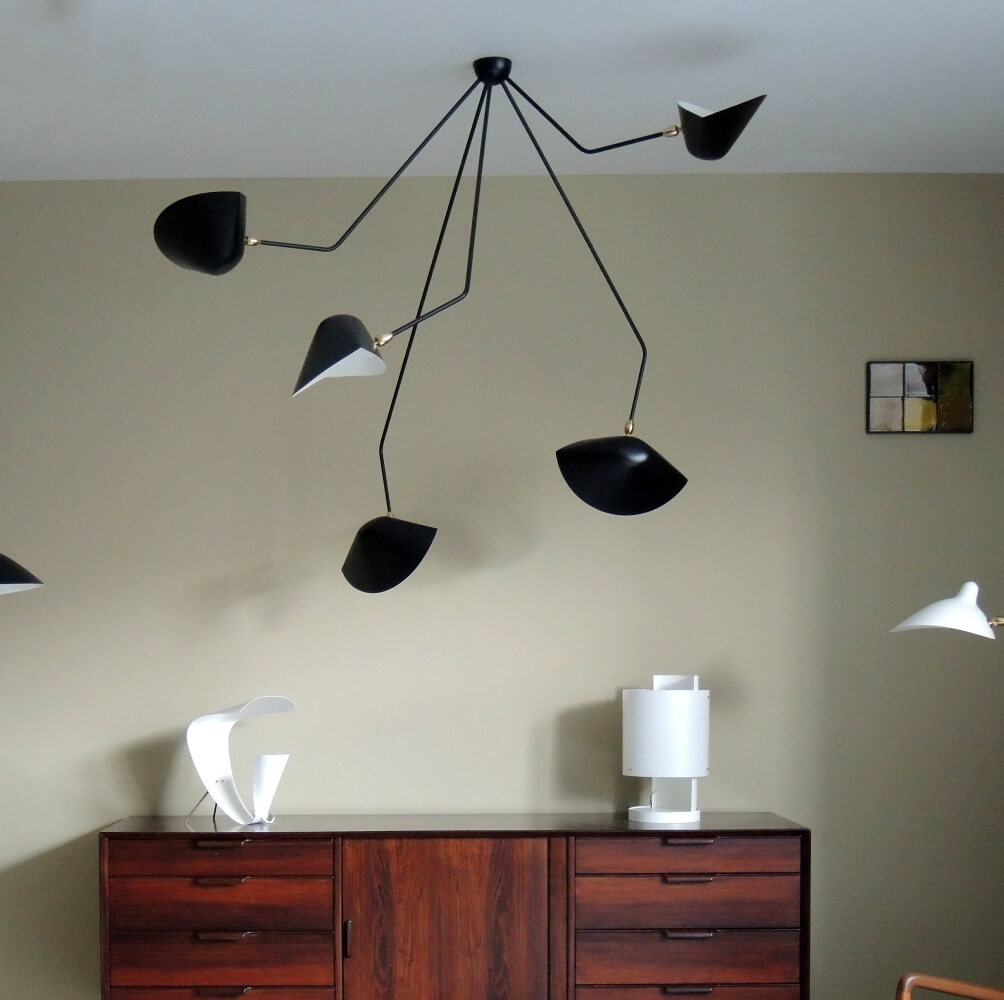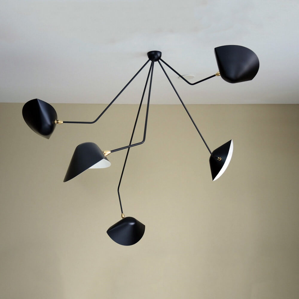 Serge Mouille Spider Ceiling Lamp – 5 Falling Arms 39″ Drop