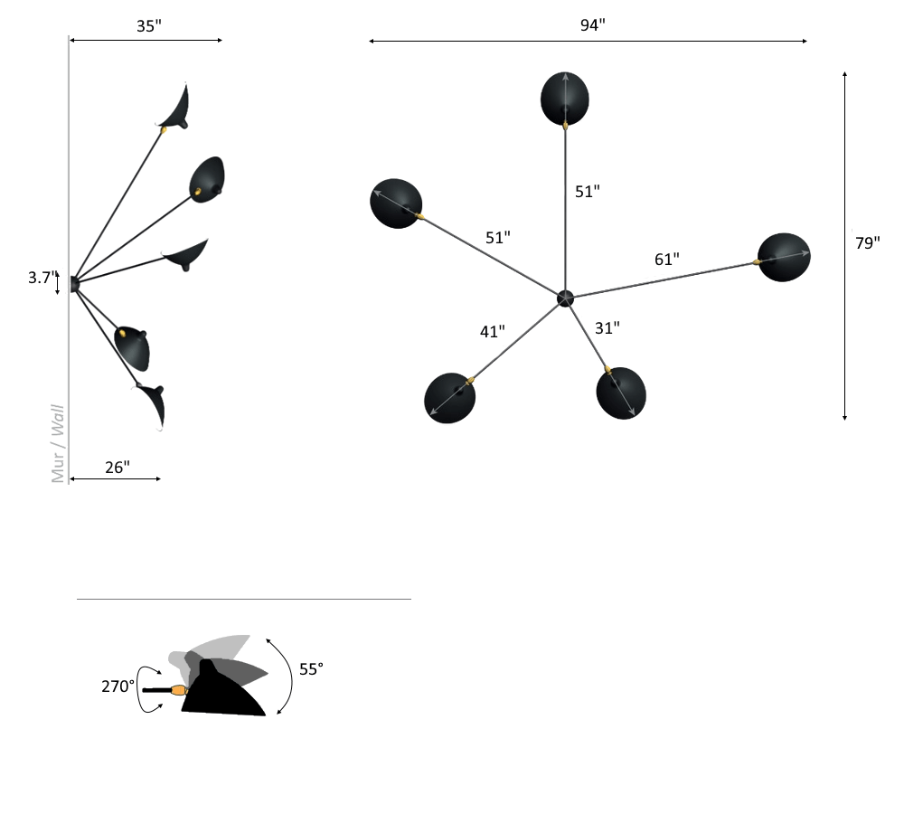 Specifications Spider Sconce 5 Arms – MSC-SP5 – 1953