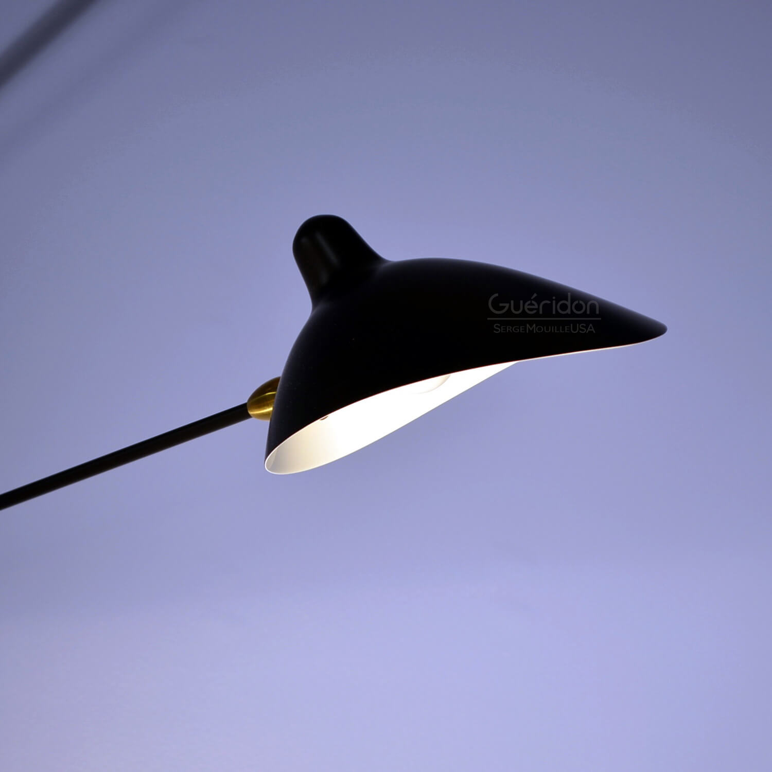 A larger sconce with two identical long arms and three shorter arms of varying lengths, this lamp can illuminate a large area of a wall or room. Each lamp head rotates and tilts.