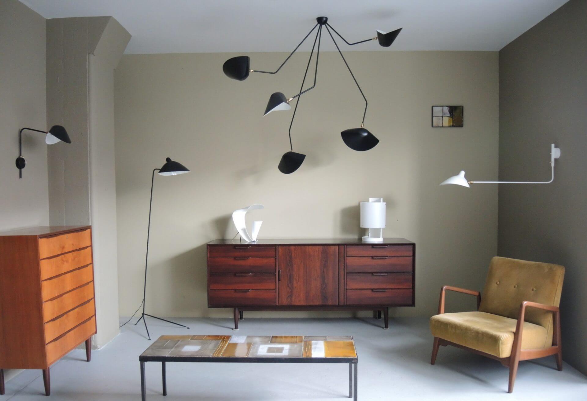 In 2002, Guéridon introduced authentic Serge Mouille Re-edition Lighting to the U.S. market and remains the definitive source of these iconic examples of French Modernist design.