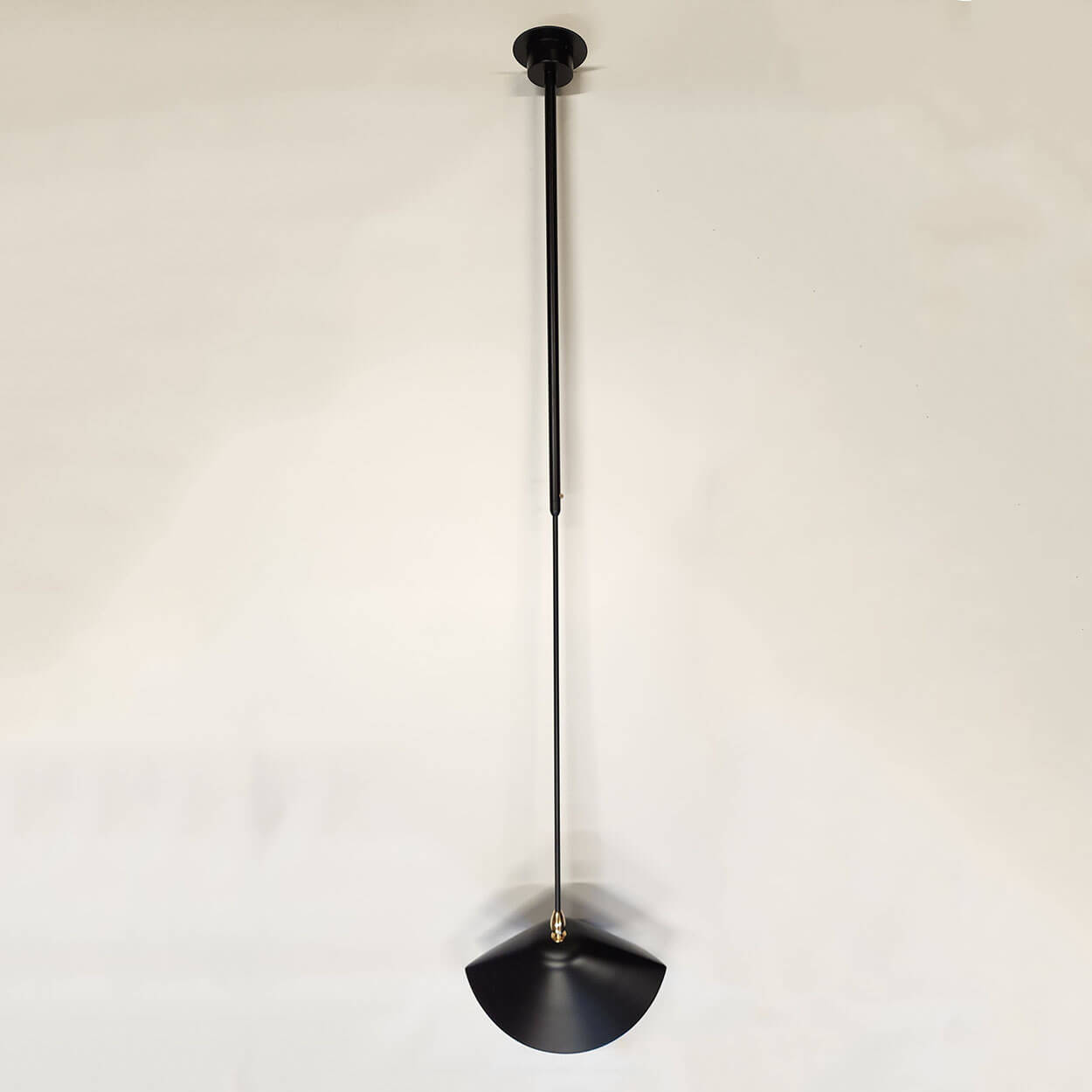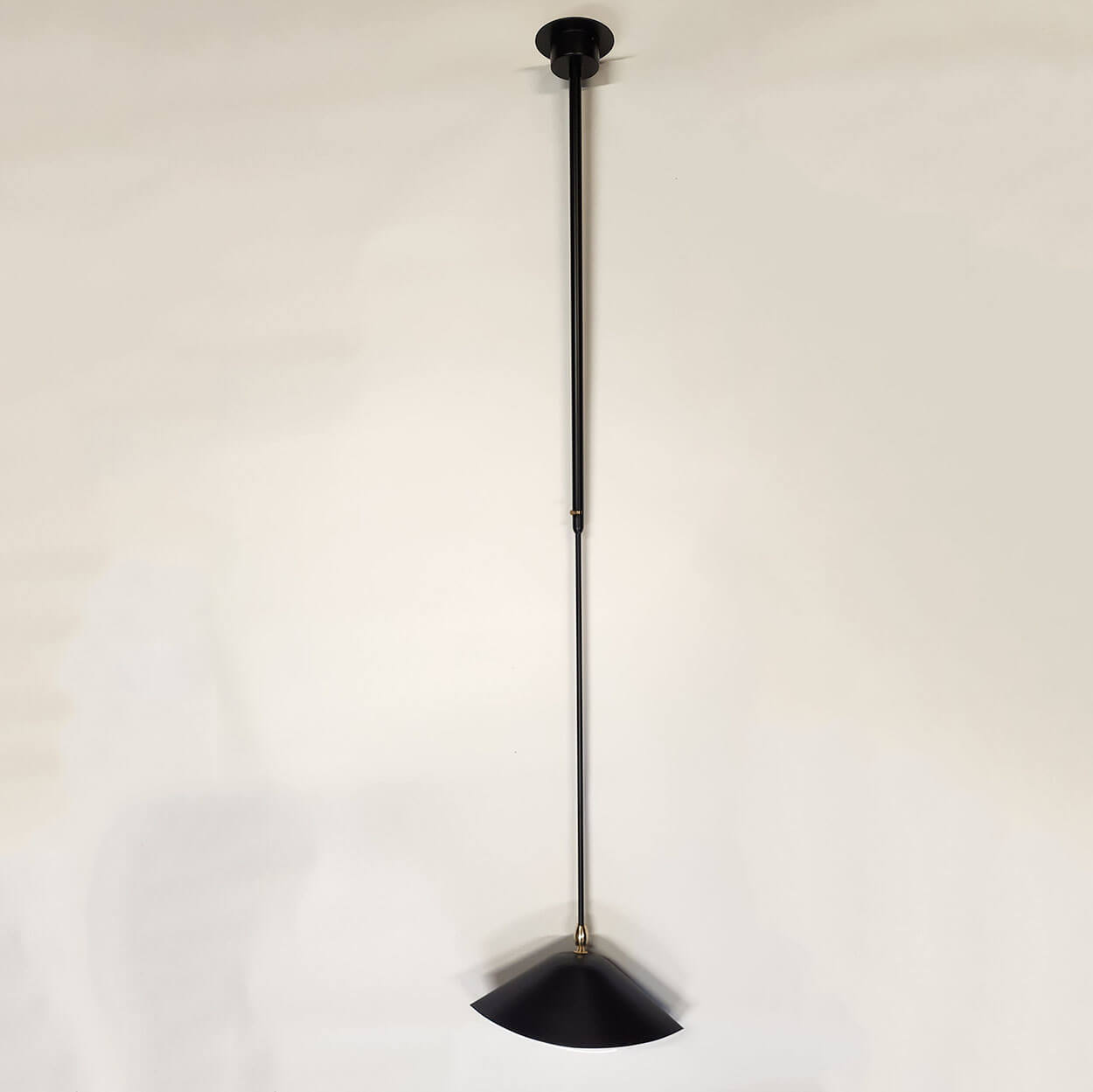 Originally designed to illuminate bookshelves in a library, this unique lamp may also light works of art or highlight a particular area in a room. The pivoting lamp shade works well alone or in grouped installations. Custom drop lengths upon approval.