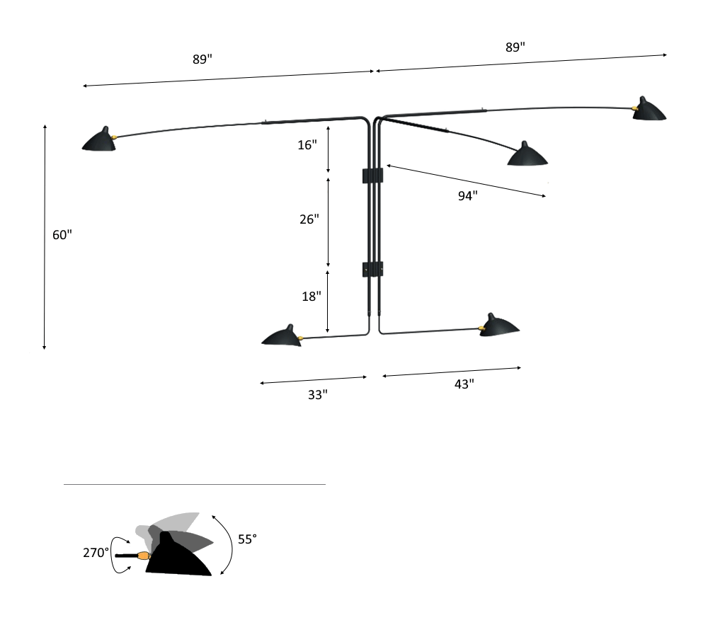 Arm Length: 33″, 43″, 89″, 89″, 94″