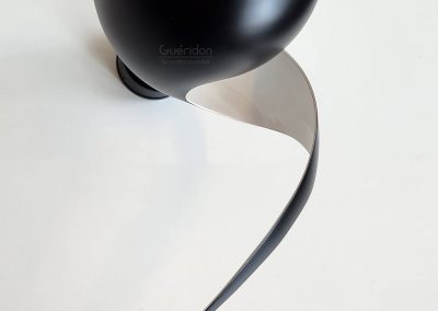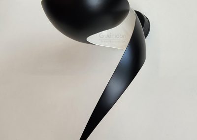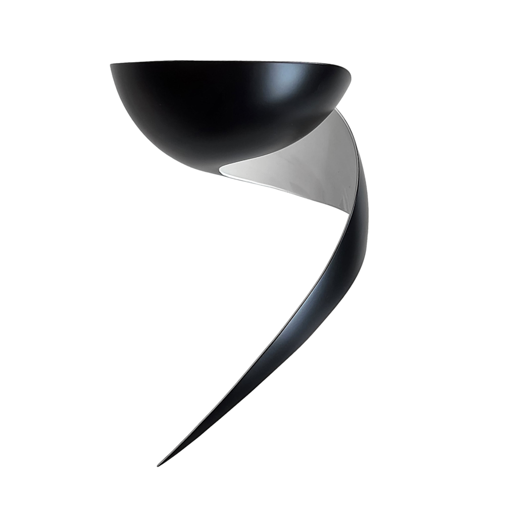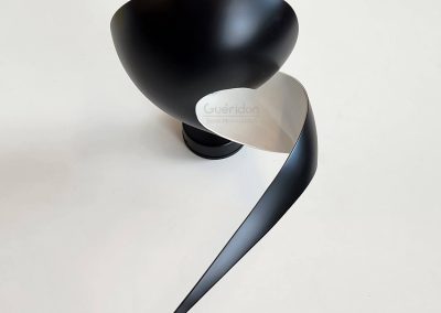 An elegant twist of metal results in a lamp that illuminates upwards while creating playful shadows through the elongated metal with tapered ending. Totally unique, this lamp adds a distinctive touch in any setting.