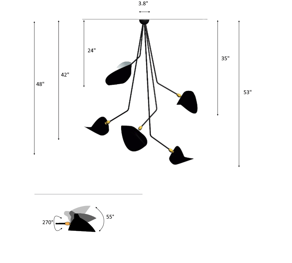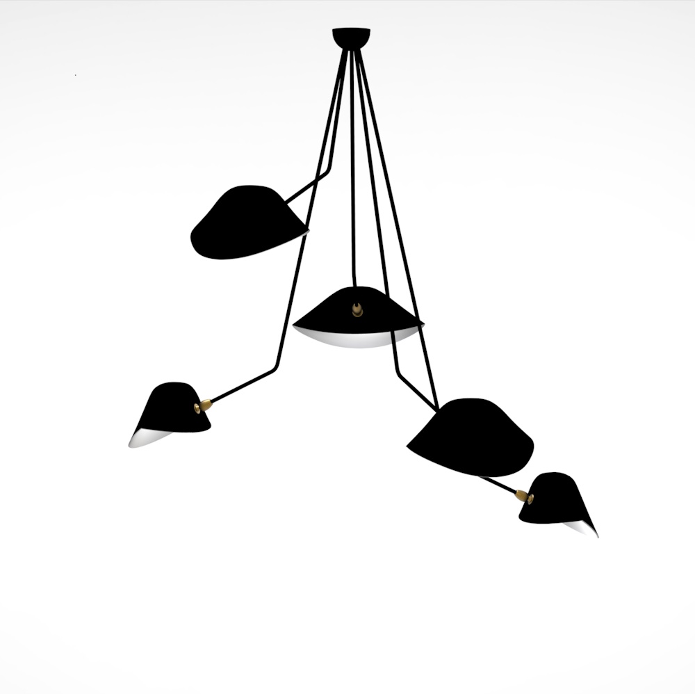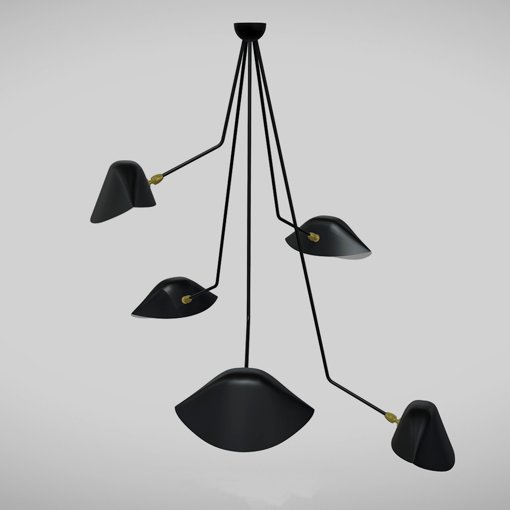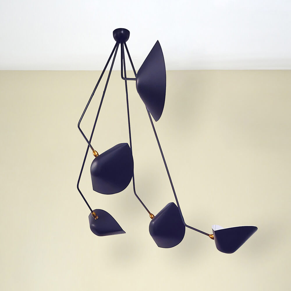 Serge Mouille Spider Ceiling Lamp – 5 Falling Arms 53″ Drop
