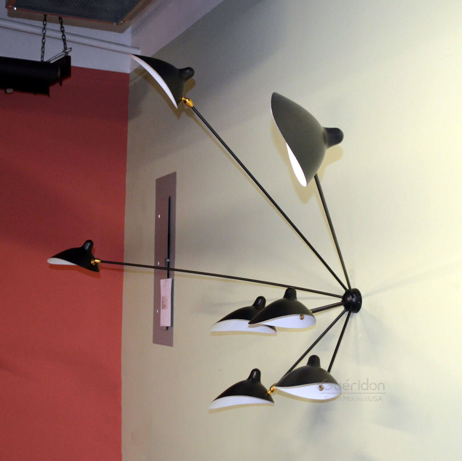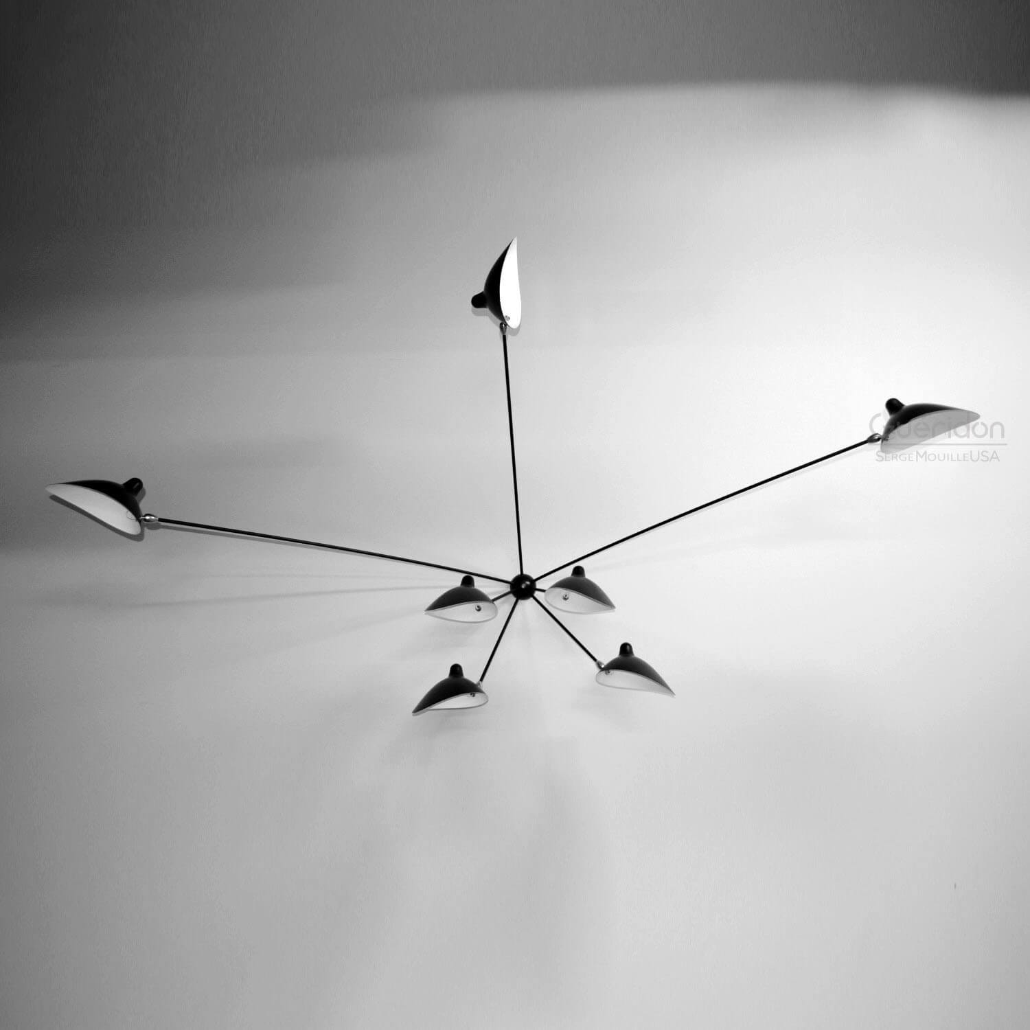 The largest of the Spider Sconces, this lamp is not only unique in its design, but equally impressive in an installation where it is the focal point of the room. Two identically long arms and two pairs of identical short arms with an odd length arm give this lamp its character.